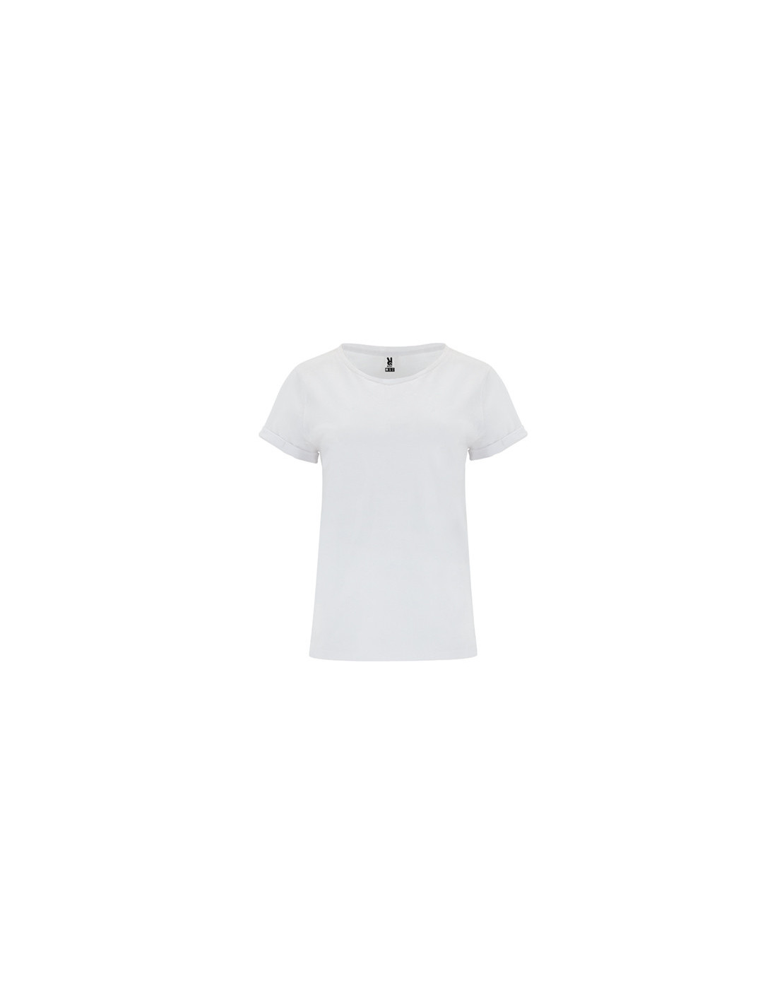 Camiseta de manga corta para mujer. Cuello redondo en el mismo tejido y cubrecosturas interior a tono. Dobladillo en mangas reforzado en cuatro puntos.