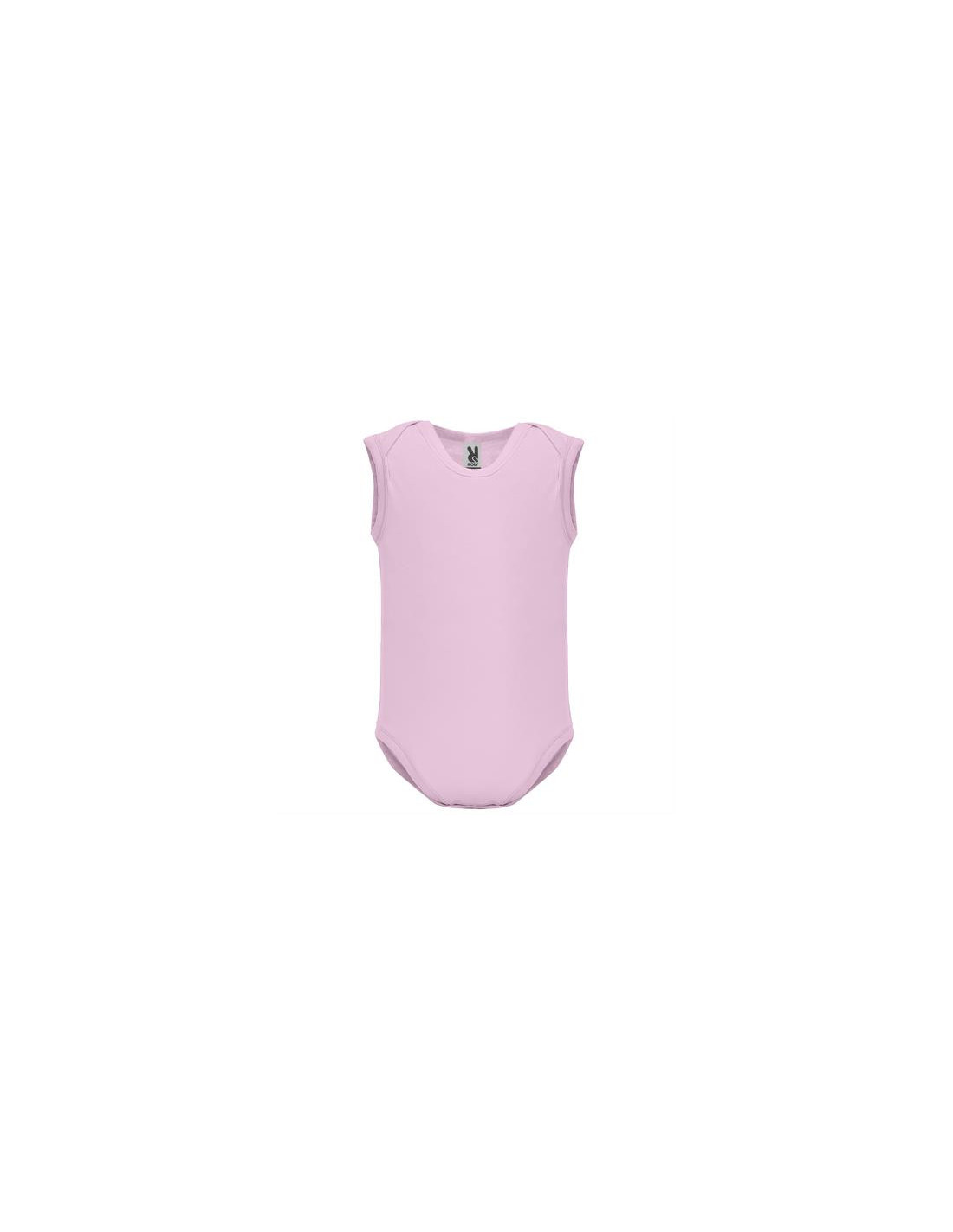 Body de bebé de tirantes de punto liso. Cuello redondo, sisas y bajo ribeteado en canalé 1x1. Cierre con botones a presión en la entrepierna. Hombro de apertura cruzada.